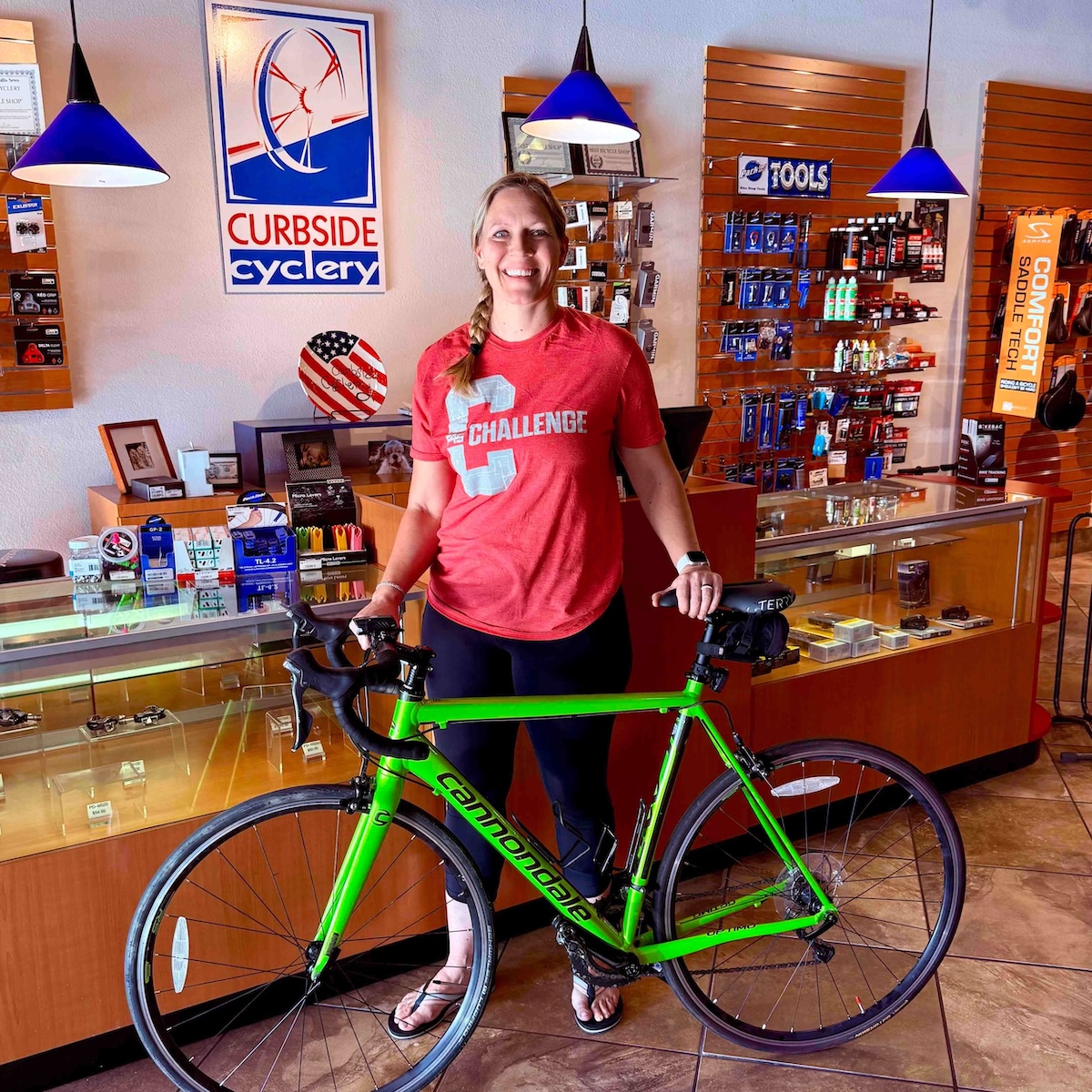 Join us in welcoming Angela Shaffer to El Tour de Tucson 2025! Angela is taking on the challenge aboard an Uphill Into The Wind loaner road bike, riding with purpose to support Uphill Into The Wind. Huge thanks to Curbside Cyclery and Steve Ellermann for the expert bike fitting, ensuring Angela is ready to roll. Let’s rally behind her as she rides for putting bodies on bikes!